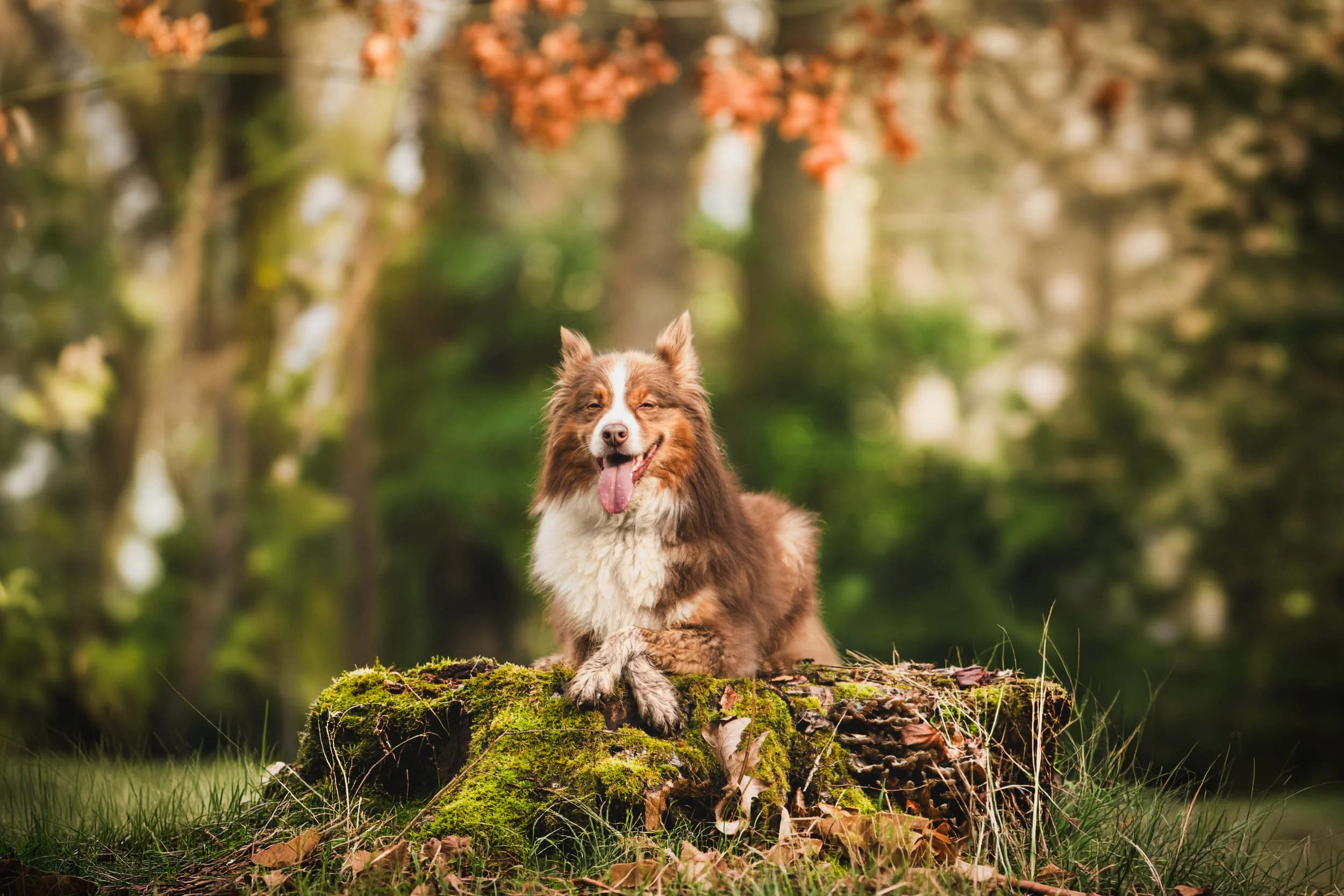 Forêt, lumière dorée d’automne, herbes hautes ou ambiance naturelle épurée : chaque décor est choisi pour sublimer la prestance et l’énergie de votre chien.